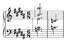 J'ai tiré mon exemple de la doc, justement. Mais là où je voudrais obtenir deux crochets d'arpège, le premier reliant l'accord main droite «si' si'» et l'autre l'accord main gauche «la' do# mi», LilyPond me donne un crochet reliant la totalité des notes. Est-ce techniquement possible?