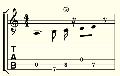 mais là j'obtiens à peu près la même chose mais pas tout à fait : le numéro de corde (5) s'affiche et je ne trouve pas comment le supprimer.