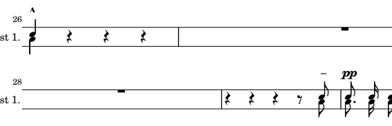 shortInstrumentName = "Cast 2." % Inscrire le nom de l'instrument au début de la portée