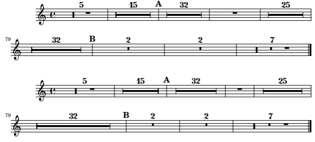 Je ne comprends pas le comportement de lilypond lorsqu'on utilise une voix supplémentaire pour gérer la mise en page. Ma partition est particulière, car l'instrument ne joue pas dans tout le mouvement. J'ai donc que des R1*XX coupé uniquement par des changements de tempo ou des repères.
