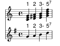\chords { \nsC \nsD \nsEm \"nsG7" }