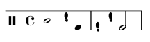 cl2 \stemUp \notePas sn4 bd4 \notePas bd \notePas hc bd2