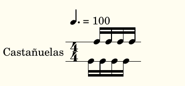 Je joue des castagnettes de concert. Je débute sur Lilypond et je voudrais bien réussir à créer de belles partitions de castagnettes. Mais j'ai plein de problèmes !